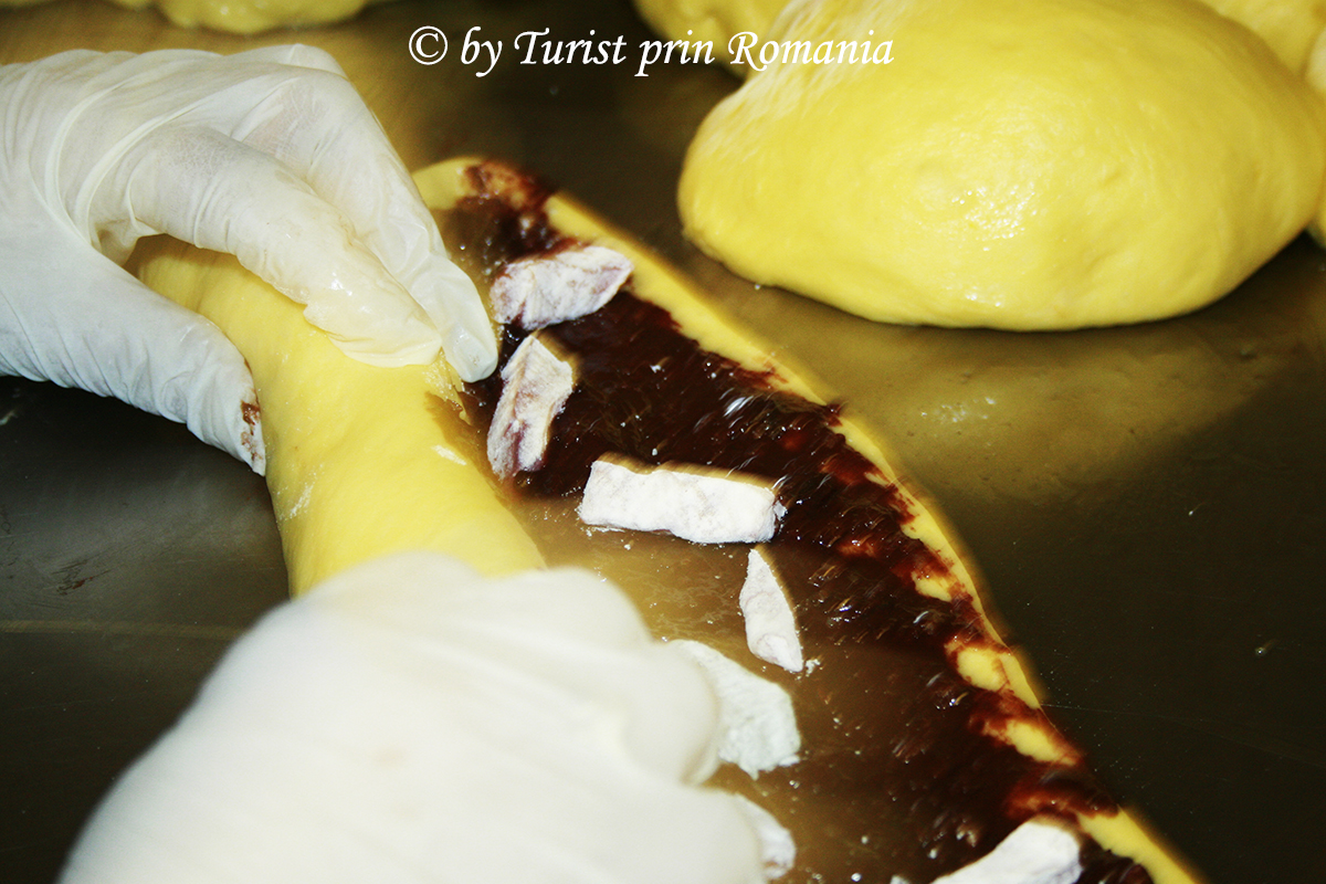 La final, rahatul a fost presărat peste umplutură, apoi aluatul a fost frumos rulat și pus la o parte. Același lucru s-a întâmplat și cu a doua și cu a treia bilă de aluat. După acest procedeu, cele trei baghete umplute rezultate, au fost frumos împletite și închise luând forma finală a cozonacului.