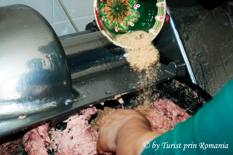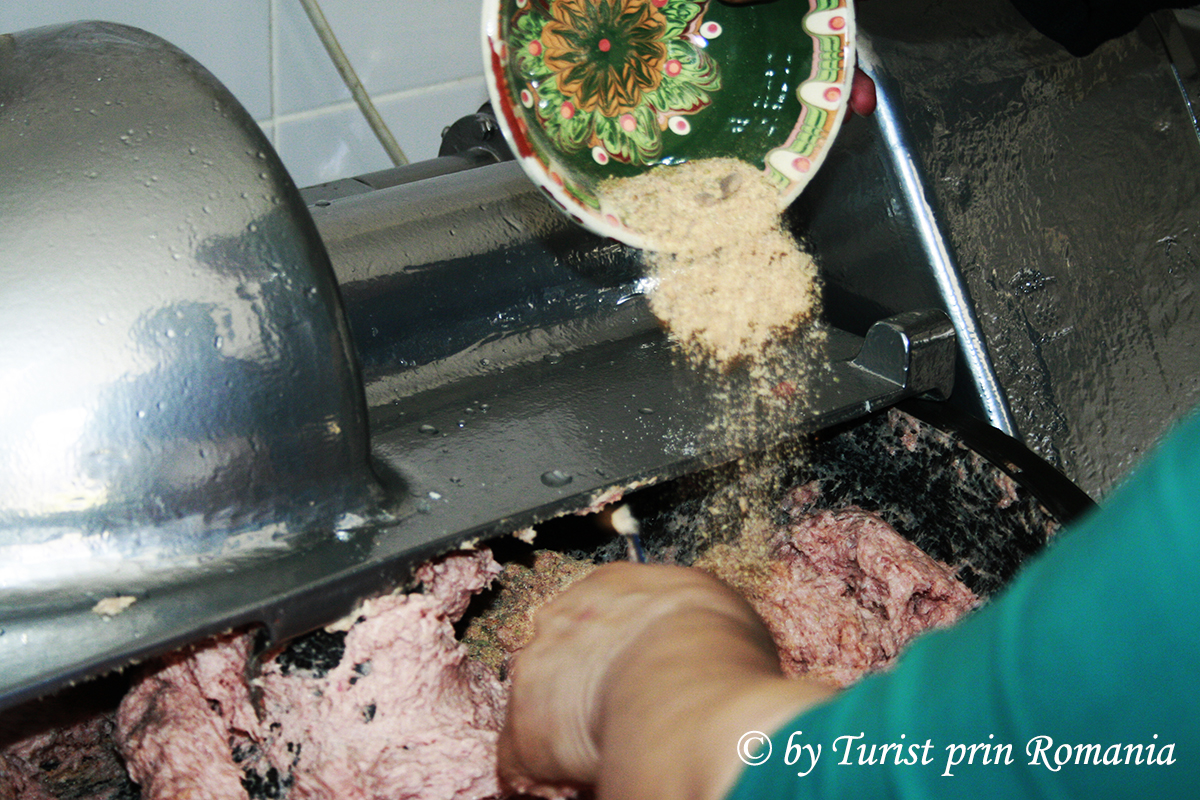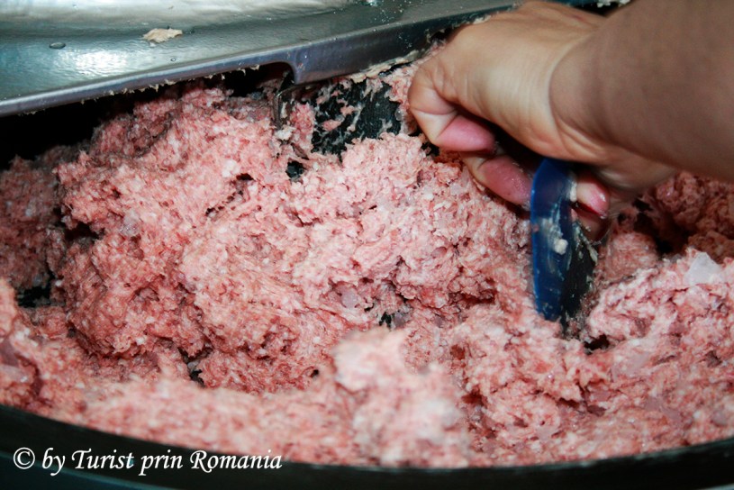 Așadar, amestecul de carne crudă din ingredientele menționate anterior, se pun la malaxor pentru a fi măcinate într-un amestec foarte fin, potrivit pentru coacere. Malaxorul de care dispune Hanul Vatra este un tip de malaxor cu rotire pe orizontală și măcinare pe verticală pentru a asigura finețe preparatului rezultat. După o primă amestecare se pune gheață și se continuă permanent amestecarea, apoi, când gheața s-a încorporat perfect, se toarnă condimentele, malaxorul fiind în funcțiune. După această operațiune, se mai amestecă până când produsul rezultat ajunge la consistența unei paste foarte, foarte fine. Apoi, în tăvi unse cu unt în prealabil, se aranjează produsul rezultat prin malaxare.