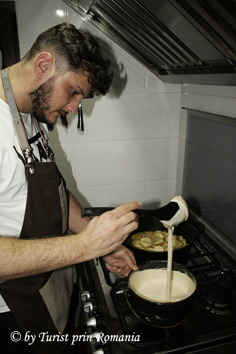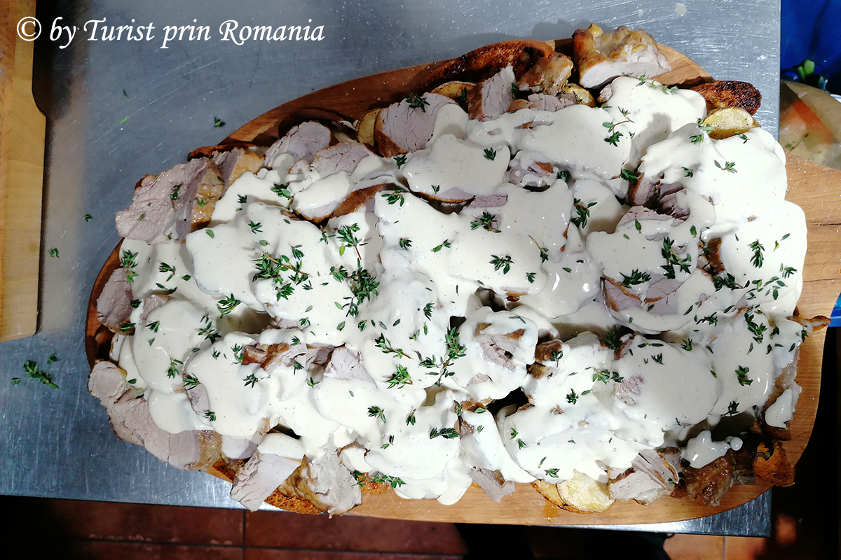 Moiseiul … întotdeauna surprinzător, indiferent de câte ori îl vei vizita, asemenea unui chef care, surprinde de fiecare dată cu preparatele sale. Astăzi, m-a surprins din nou Daniel Budai sau chef Budai cu un preparat absolut delicios care include deopotrivă mâncarea tradițională și cea continentală. Astfel, am avut ocazia să asist și, ulterior să degust, un preparat unic în felul său, la fel de unic precum cel care l-a preparat. Bine de știut este că asemenea minunăție de mușchi de porc la cuptor pe scrijele de cartofi cu sos de brânză se poate servi doar la Pensiunea “La Pătru” din Moisei.