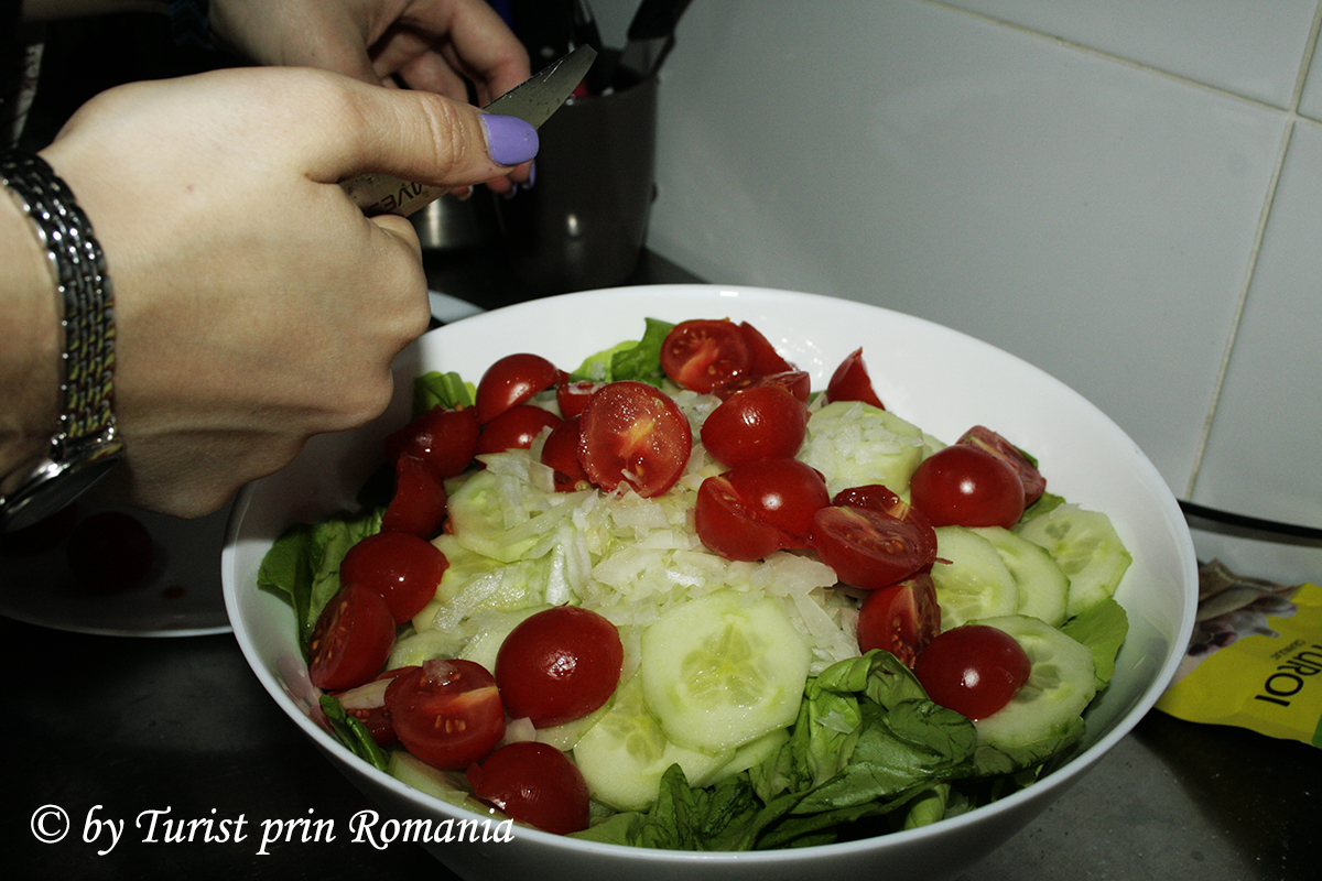 Salata asortată clasică și plusul de culoare a fost asigurat de mâna dreaptă a lui chef Budai, Andreea Ivașcu, nelipsită din bucătăria pensiunii “La Pătru”.