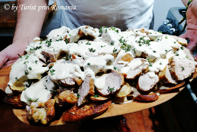 Moiseiul … întotdeauna surprinzător, indiferent de câte ori îl vei vizita, asemenea unui chef care, surprinde de fiecare dată cu preparatele sale. Astăzi, m-a surprins din nou Daniel Budai sau chef Budai cu un preparat absolut delicios care include deopotrivă mâncarea tradițională și cea continentală. Astfel, am avut ocazia să asist și, ulterior să degust, un preparat unic în felul său, la fel de unic precum cel care l-a preparat. Bine de știut este că asemenea minunăție de mușchi de porc la cuptor pe scrijele de cartofi cu sos de brânză se poate servi doar la Pensiunea “La Pătru” din Moisei.