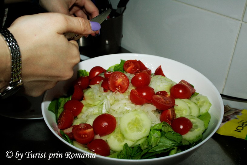 Salata asortată clasică și plusul de culoare a fost asigurat de mâna dreaptă a lui chef Budai, Andreea Ivașcu, nelipsită din bucătăria pensiunii “La Pătru”.