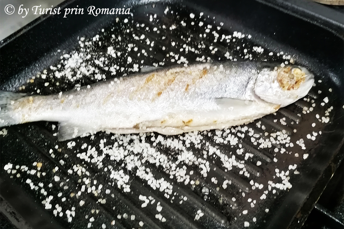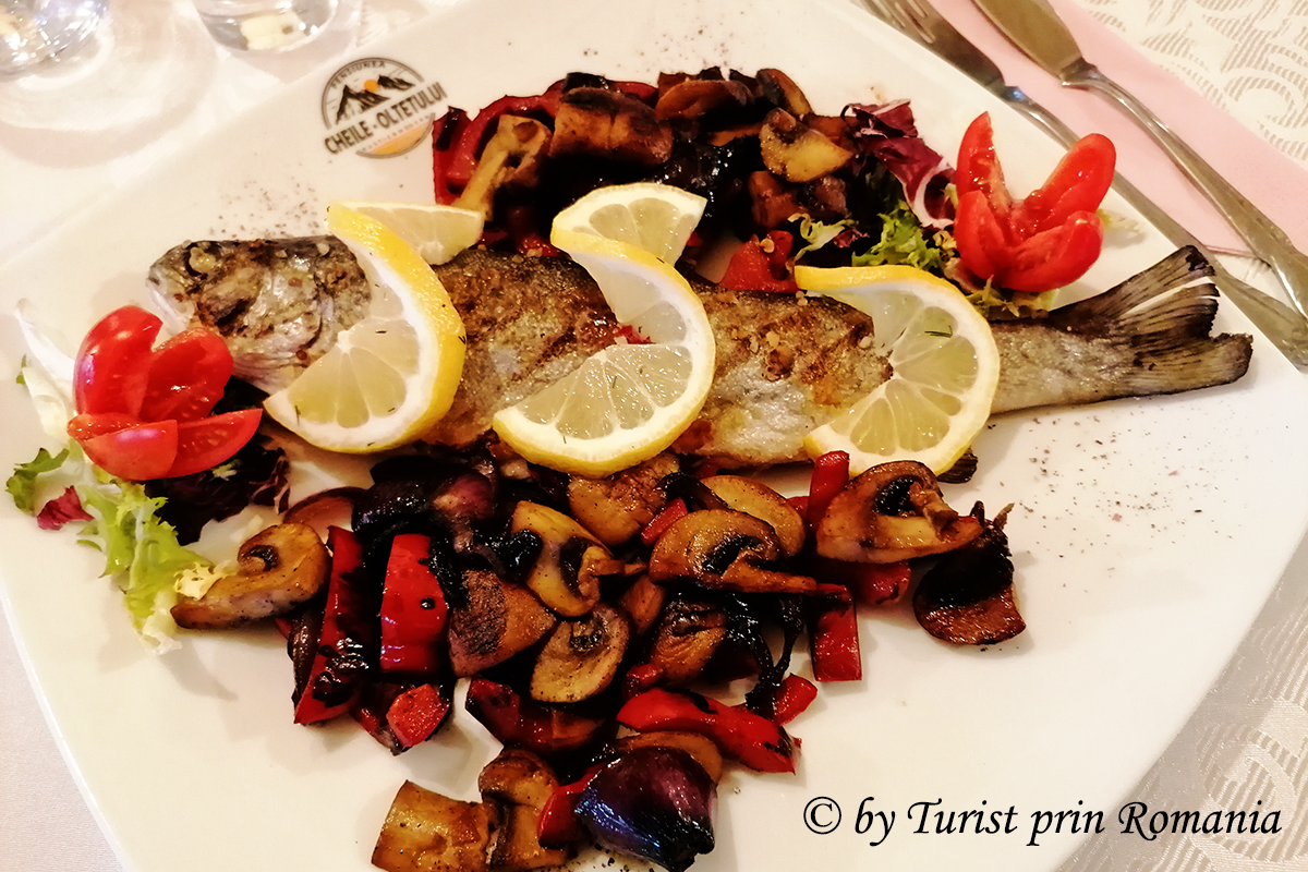 Asemenea cadru natural se putea asorta numai cu o masă pe măsură așa că, pe măsura Oltețului, nestăvilit și zbuciumat, am ales un preparat în perfectă armonie, păstrăv cu legume. De prepararea lui a avut grijă doamna Cristina, iar rezultatul a fost conform zicalei “mâncarea iese după sufletul omului”.