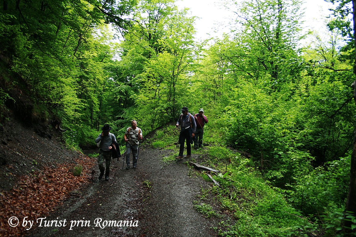 Drumul nostru continuă, în urcuș de-a coasta, pe lângă stâncării și făget tânăr, apoi, brusc, la o furcitură (bifurcație), cotim la dreapta pentru a ocoli niște stânci, urmând să ajungem deasupra acestora. Pe tot traseul, Curcanu` și Gore nu au făcut altceva decât să povestească despre legendele locului și întâmplările prin care au trecut de-a lungul vieții lor de ghizi. Limbajul, umorul și patosul cu care povestesc te fac să-ți dorești ca drumul să nu se termine niciodată.