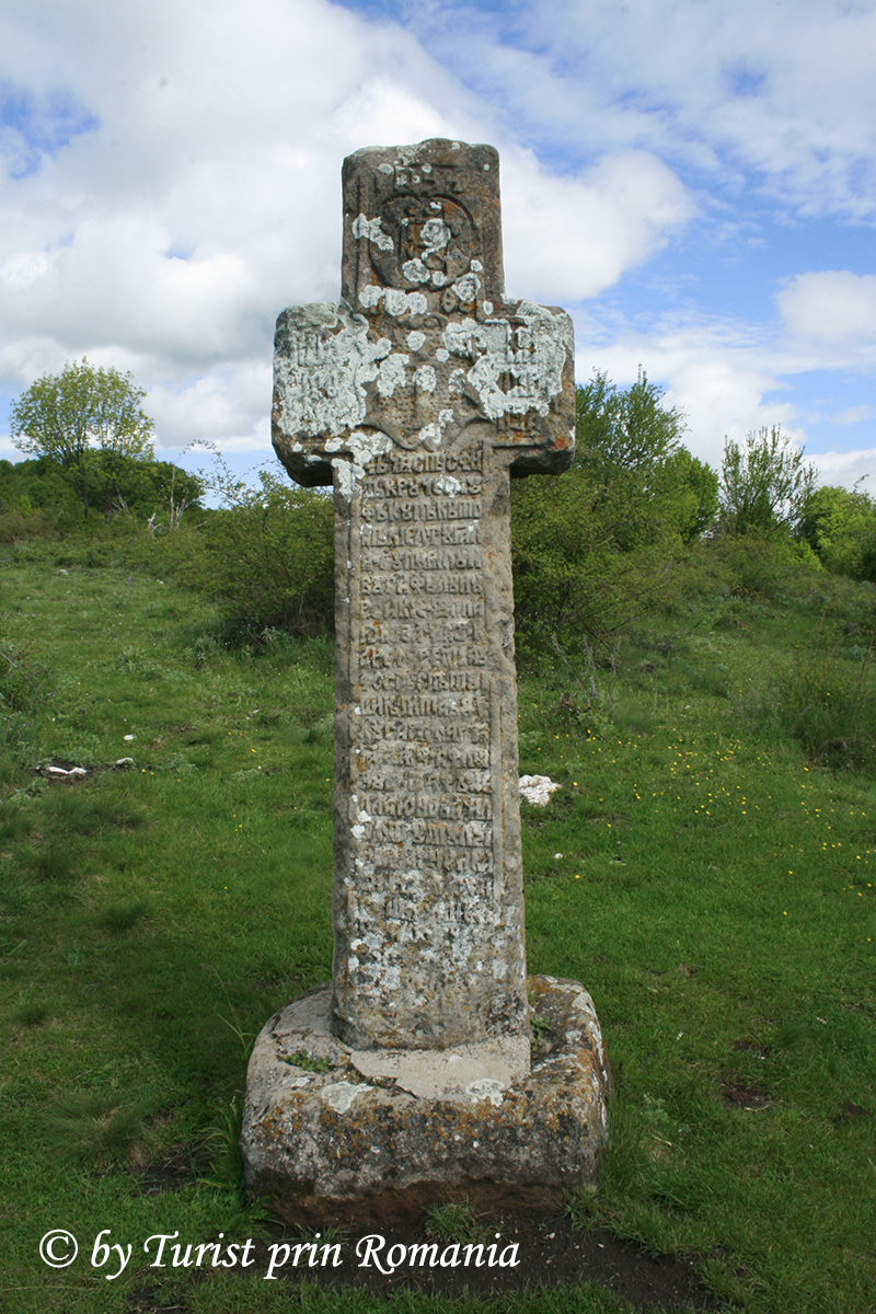 Această sfantă cruce sau făcutu cu toată cheltueala dumnealui vătafului Ursachie ut plaiu Novacilui care în vremea lui a fost stătut și căpitan de husari în Ardeal iar acuma să află pus vătaf de plaiu Novacilor întru mulţi ani. E ridicată această sfântă și dumnezeească cruce în acest munte cu …,