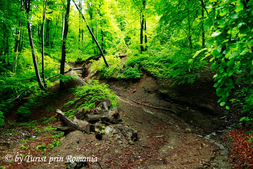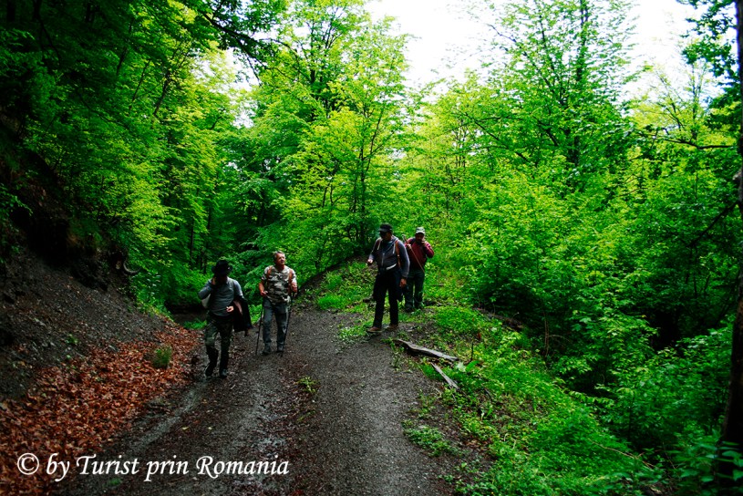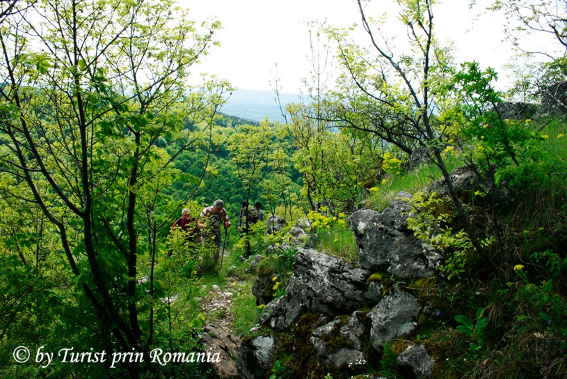 Drumul nostru continuă, în urcuș de-a coasta, pe lângă stâncării și făget tânăr, apoi, brusc, la o furcitură (bifurcație), cotim la dreapta pentru a ocoli niște stânci, urmând să ajungem deasupra acestora. Pe tot traseul, Curcanu` și Gore nu au făcut altceva decât să povestească despre legendele locului și întâmplările prin care au trecut de-a lungul vieții lor de ghizi. Limbajul, umorul și patosul cu care povestesc te fac să-ți dorești ca drumul să nu se termine niciodată.