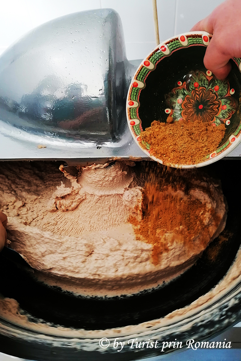 Pentru a putea asigura consistența necesară, la jumătatea procesului de malaxare, s-a adăugat zeamă din carnea ce a fost fiartă la începutul procesului de preparare. Malaxorul folosit de domnul Loidl la prepararea pastei este un utilaj conceput și creat special pentru obținerea texturilor fine.