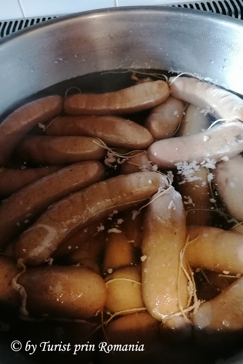 După tot acest proces, pasta rezultată se bagă în maț, apoi se dă la abur pentru a se frăgezi și a se fierbe și ficatul crud. Răcirea pateului se face prin punerea acestora în apă rece. Pentru gust și culoare, produsul rezultat se pune puțin la afumat.