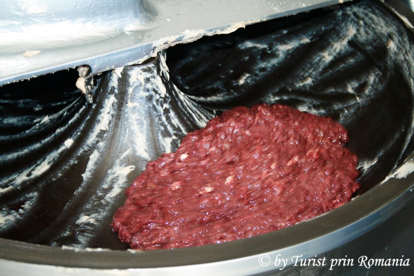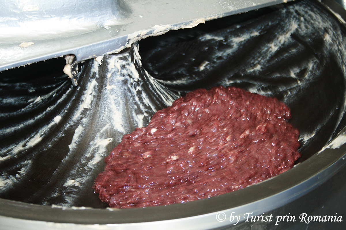 Toate aceste ingrediente, împreună cu tot ceea ce înseamnă condiment, se pun la malaxor și se toacă până când se formează o masă cu o textură foarte fină.