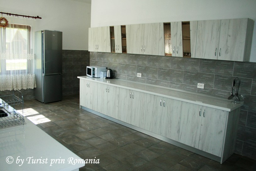Bucătătria Pensiunea Lardi este, literalmente, imensă, dotată cu toate cele necesare pentru prepararea oricăror tipuri de mâncăruri și este concepută în așa fel încât câteva familii să poată găti fără a se incomoda unii pe alții.