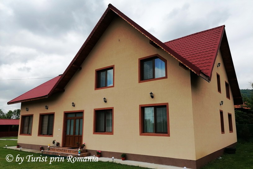 Pe partea dreaptă se găsește pensiunea propriu zisă, cu intrare atât dinspre curte cât și dinspre foișorul cu grătar.