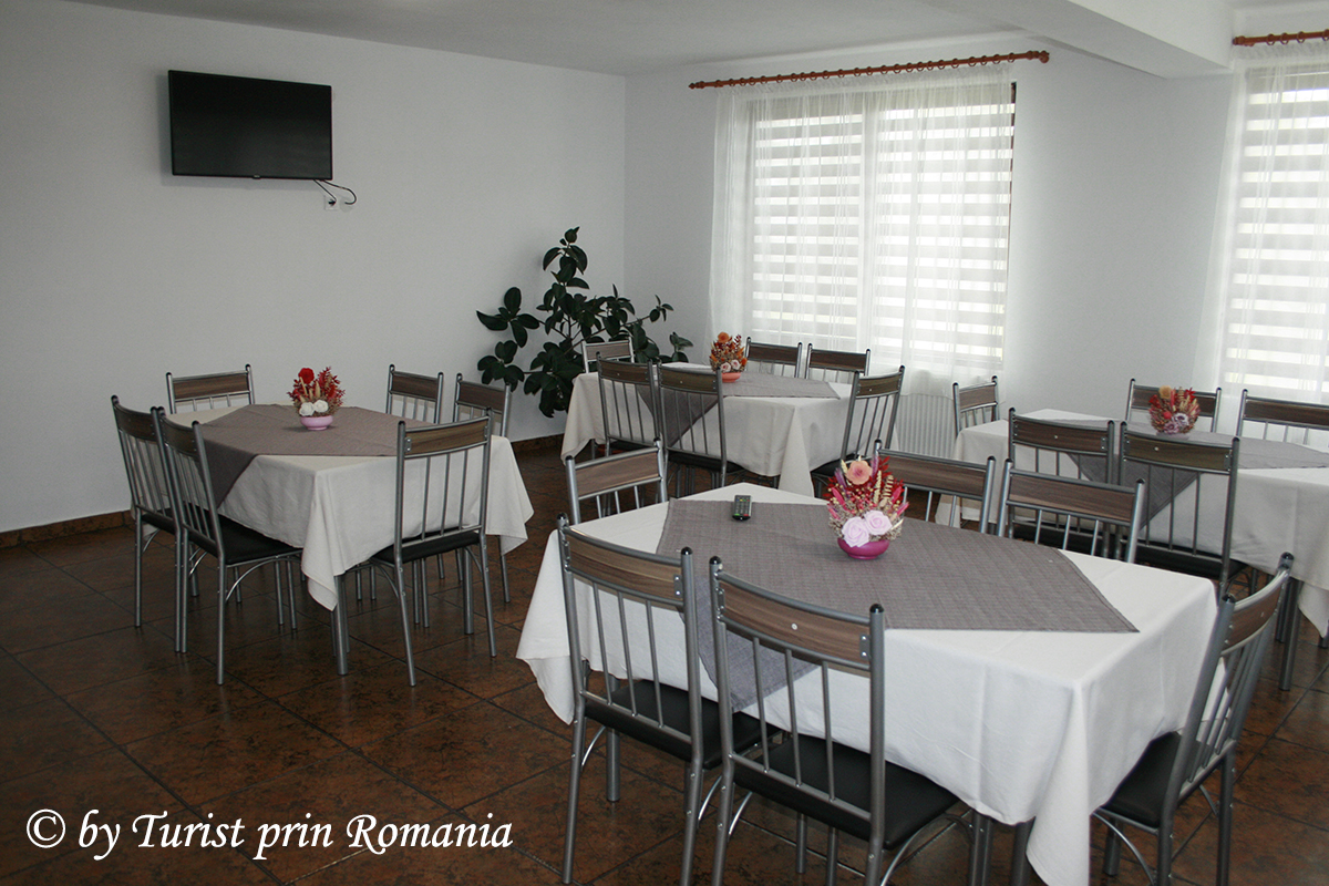 Pensiunea propriu zisă se compune dintr-o bucătătie complet utilată, un salon pentru servit masa și un living, la parter, și camerele spațioase, foarte luminoase, curate și bine organizate, la etaj.