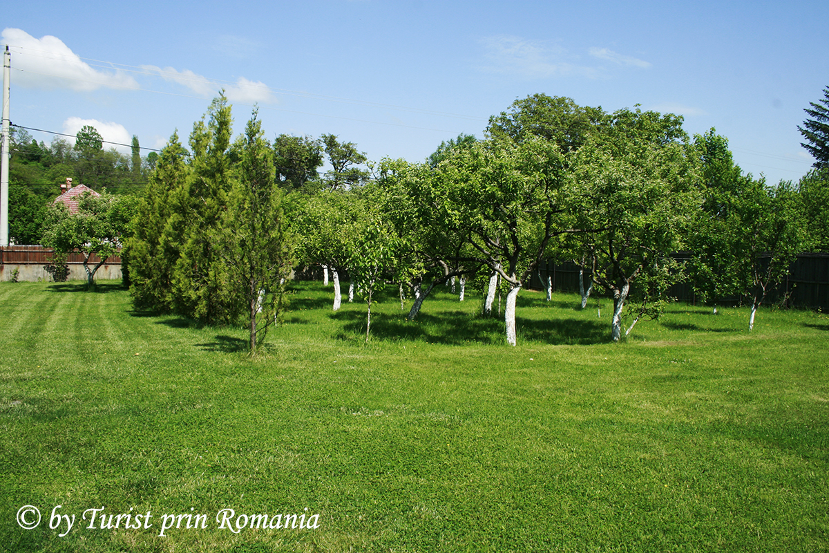 De cum intri în curte este imposibil să nu remarci livada de pomi fructiferi din partea stângă și spațiul verde imens.