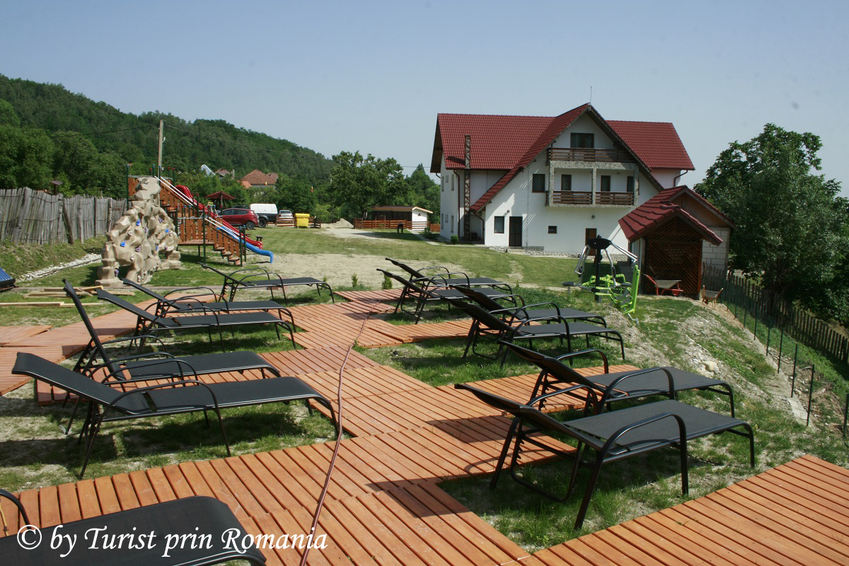 Curtea pensiunii este frumos organizată și oferă turiștilor posibilitatea de a se relaxa într-un mediu natural de excepție. Astfel, Pensiunea Casa Maria pune la dispoziția turiștilor un foișor elegant, unde poți să te retragi după o bine meritată baie de soare pe șezlong sau baie în piscină.