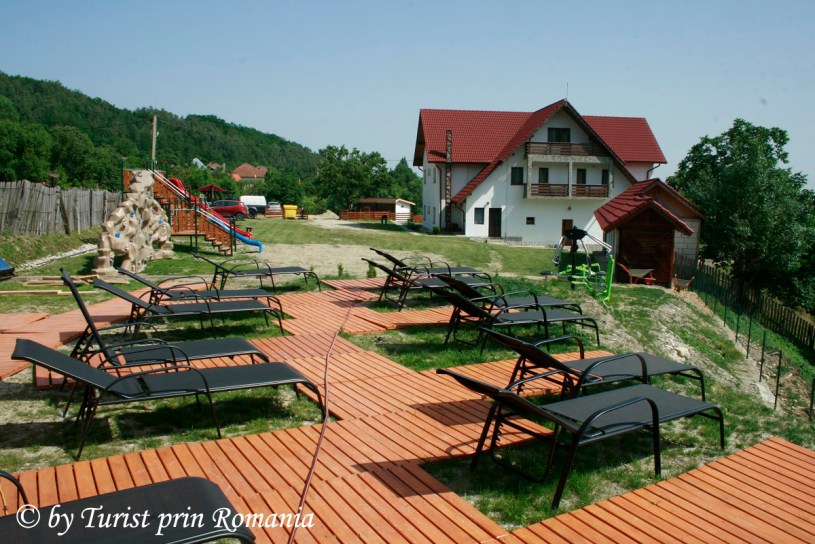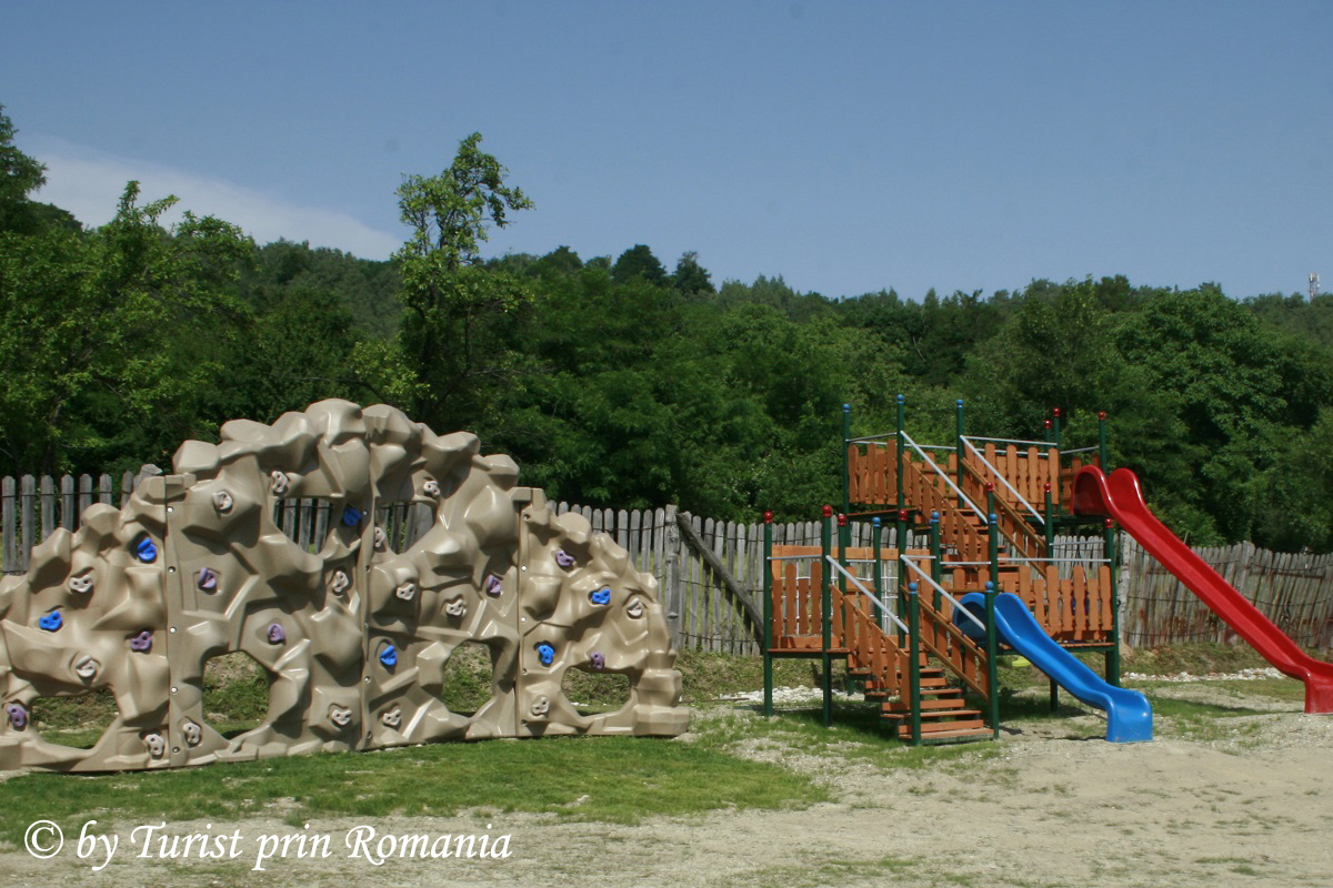 Copiii pot să se zbenguie în curtea pensiunii și să se joace folosindu-se de peretele de cățărare și de tobogane.