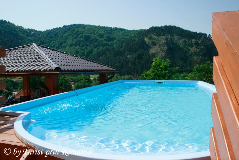 Cea mai frumoasă amintire de aici, de la Pensiunea Casa Maria, este o ședință de bălăceală și lenevire în piscină admirând Cheile Galbenului.