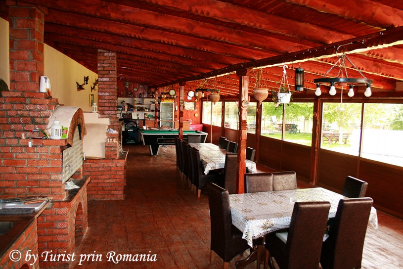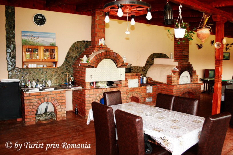 La interior, o terasă acoperită cu loc pentru servit masa și un spațiu pentru grătar constituit din tradiționalul grătar, loc pentru ceaun, plită și cuptor pentru pâine așteaptă să fie folosite de turiști.