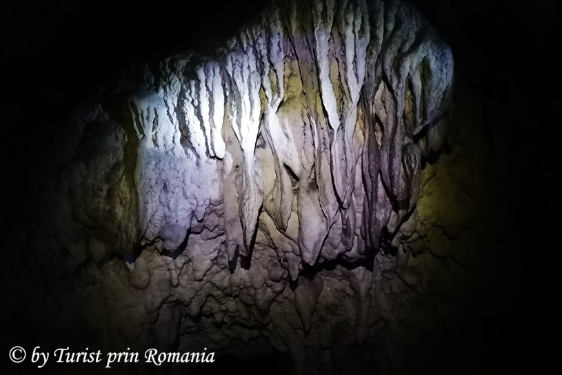 Umbre ciudate, culori stranii și, … doar pașii noștri pe pământul scurmat de izvorul subteran. Aici, la Peștera Ascunsă, am avut ocazia pentru prima oară, să văd oase înglobate în piatră, resturi de cochilii de melci și stalactite și stalagmite în formare într-o peșteră sălbatică, neamenajată pentru circuitul turistic.