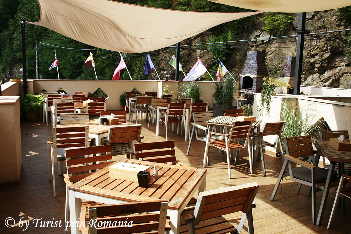 Din restaurant se poate ieși pe cele două terase amenajate deasupra râului Cerna de unde priveliștea este deopotrivă amețitoare și relaxantă. Preparatele gastronomice pe care le poi servi aici fac parte atât din bucătăria tradițională românească cât și din cea internațională astfel că, papilele gustative se pot bucura în voie de orice preparat veți dori să serviți.
