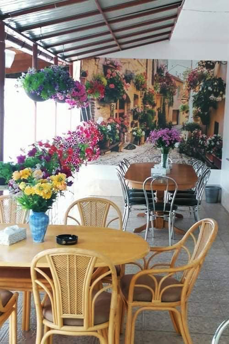 Terasa de la etaj, unde sunt și camerele, pe perioada verii constituie un rai al florilor și culorilor, iar locația, retrasă de zgomotul orașului, te introduce în peisajul feeric al Munților Semenic.