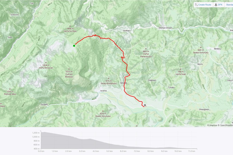 Traseul a pornit de la Pensiunea Steaua Munților din satul Seliștea comuna Isverna. Am urmat drumul comunal DC50 pentru aproximativ 100 de metri, apoi am cotit la dreapta către Moara lui Surdei, moară veche de mai bine de 3 secole care încă deservește cu succes localnicii din sat și nu numai, important obiectiv turistic ce va fi tratat ulterior.