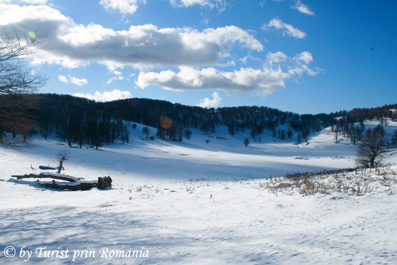 De aici, drumul continuă printr-o pădure de fagi seculari pe care cu greu îi pot cuprinde 3 persoane ținându-se de mâini. Peisajul absolut fantastic, ireal aproape, acompaniat de gerul iernii și de cerul albastru dădea de știre că urmează acel loc de poveste, parcă de pe altă lume, Poiana Beletina.