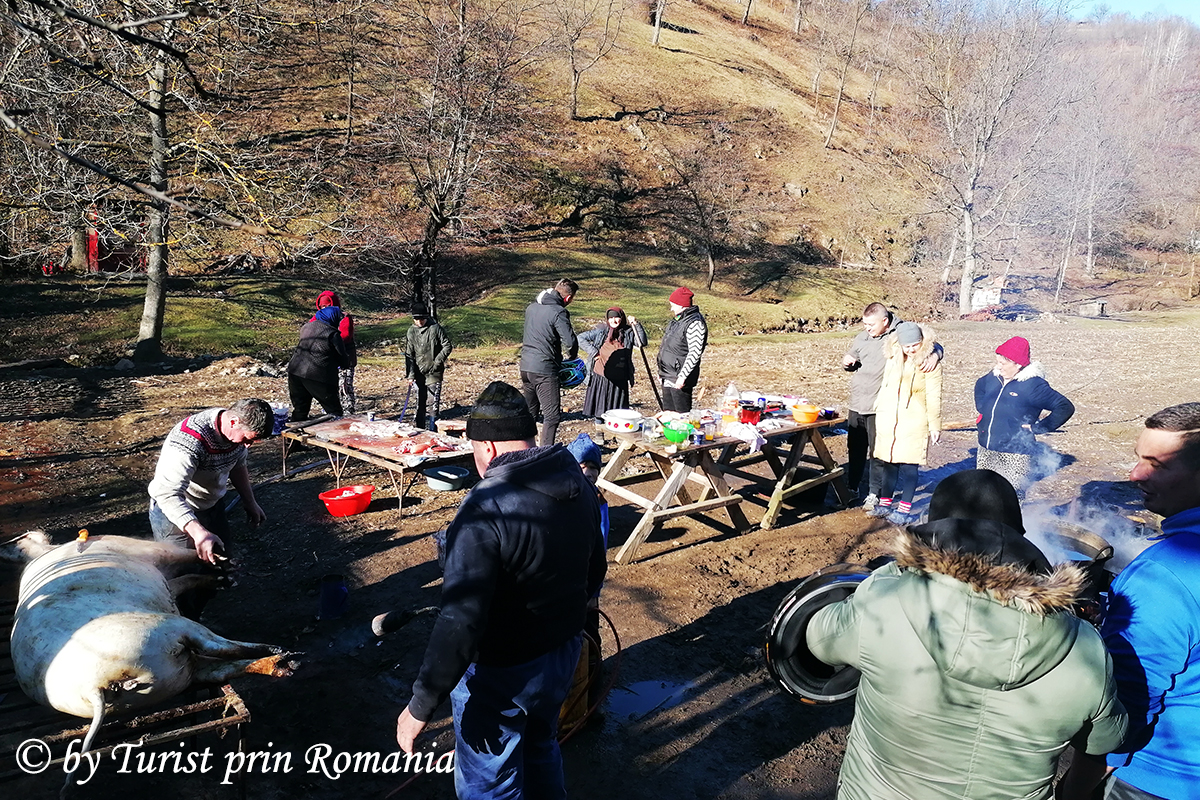 Ne-am ospătat cu pomana porcului și cu alte bunătăți prezente la tăiatul porcului înainte de Crăciun. Aici, am schimbat câteva vorbe cu localnicii, am gustat din produsele tradiționale specifice acestei perioade și ne-am continuat drumul către Poiana Beletina, de această dată convinși că nu ne vom mai opri nicăieri până la destinația finală, dar convingerea noastră a fost doar teoretică, drumul fiind mult mai anevoios decât ne-am așteptat.