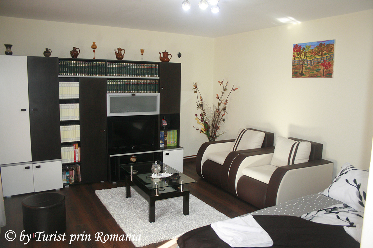 Evident, nu lipsește accesul la internet prin conexiune wireless, semnalul la telefonul mobil și televizorul. Am făcut un tur de apartament și apoi, din curiozitate, am coborât și la parter unde se află o altă cameră, cu aceleași condiții ca apartamentul, doar că dispunerea este diferită. La demisol, o bucătărie este pusă la dispoziția musafirilor, iar alăturat se ală o cămară cu bunătăți din gastronomia locală.