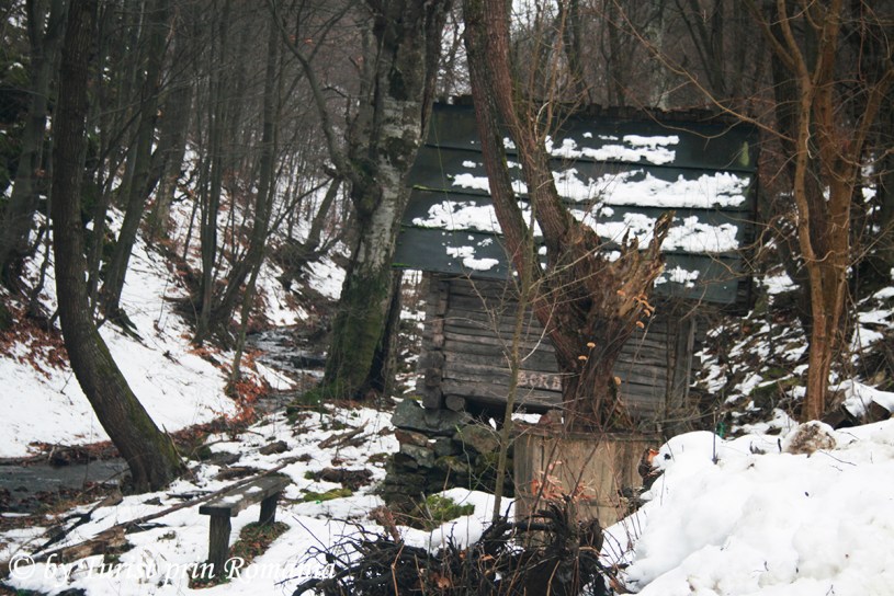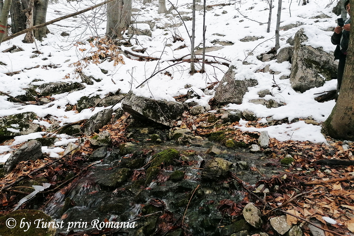 O parte din drum am ținut malul râului pe partea stângă apoi am urcat pieptiș îndepărtându-ne ca, în final, să ieșim undeva pe un tăpșan unde un firicel de apă își croia anevoios drum către aval. Fagii imenși ținaeu piept viscolulu și, din când în când, se aplecau ușor în vuietul vântului, parcă pentru a da binețe. Aici, am găsit ce-a de-a doua minune, Izvorul Coșuștei.