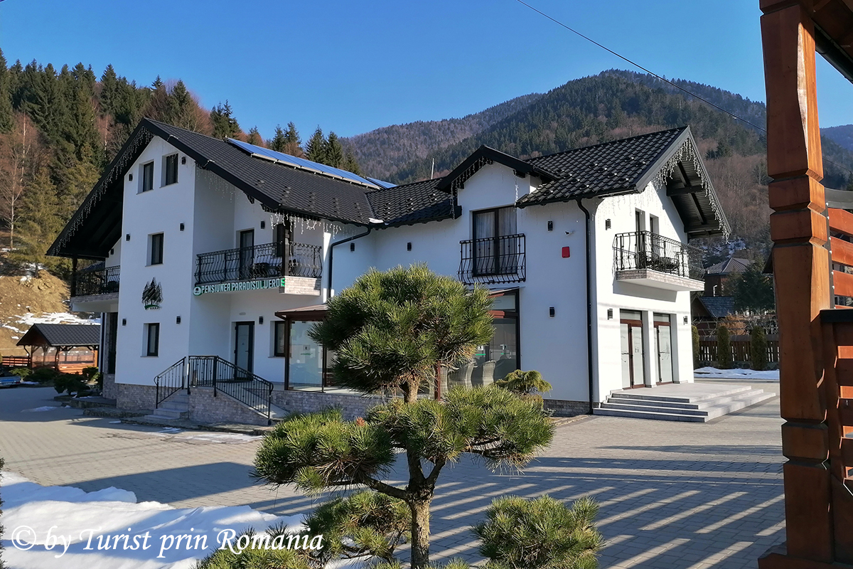 Pe partea stângă cum urci pe strada Izvorul Dragoș, o mândră poartă maramureșeană și o clădire cu o arhitectură ce se încadrează perfect în peisajul zonal îți dă de știre că ai ajuns în Paradis, mai precis într-un Paradis Verde, unde ospitalitatea, curățenia și bunul gust te așteaptă cu drag și brațele deschise.