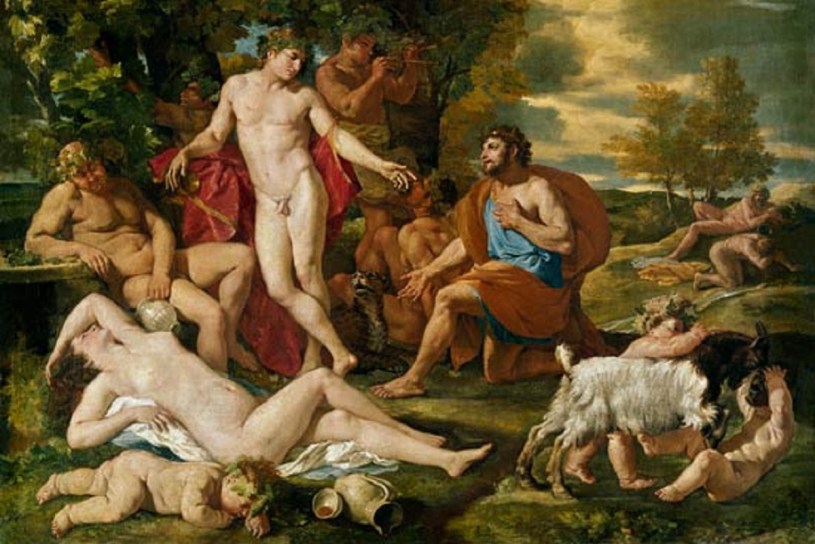 S-a spus ca inainte de el existau doua lumi, cea divina si cea umana, doua semintii, cea a zeilor si cea a oamenilor. Dionysos – Bacchus zeul vinului incearca sa-i introduca pe oameni in lumea zeilor si sa-i transforme intr-o semintie divina. Omul accepta sa se alieneze in speranta de a fi transfigurat. Orice adept fervent al lui Dionysos aspira sa iasa din propria persoana prin extaz si, in elanul entuziasmului, sa se contopeasca cu zeul de care este posedat pentru un timp.