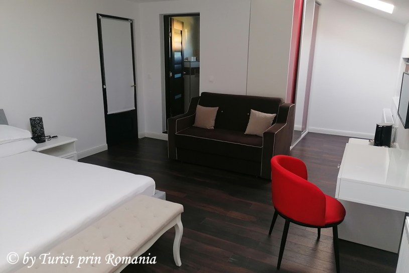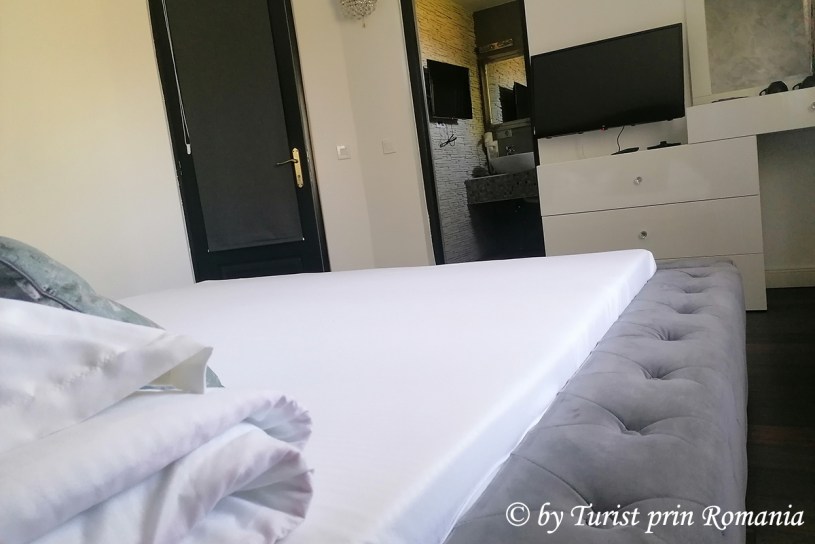 Mobilierul este, parcă. perfecti ntegrat în peisaj, feresatra din tavan poziționată exact deasupra patului imens și facilitățile din interior au făcut ca șederea mea aici să fie un adevărat festin al relaxării și al odihnei.