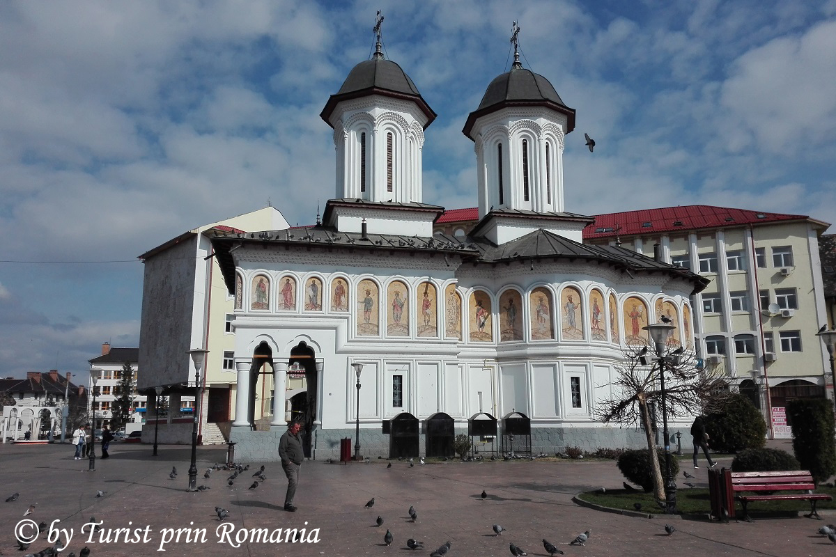 În piaţa centrală se află şi Catedrala Domnească, cu o superbă dar şi interesantă pictură exterioară. Lăcaşul mai este cunoscut ca Biserica filosofilor deoarece printre chipurile zugrăvite se regăsesc cele ale lui Aristotel, Pitagora, Socrate, Hipocrate. Biserica poartă hramul Sfinţilor Mihail şi Gavril, a fost ctitorită de doi negustori de aceea i se mai spune şi Biserica Negustorilor sau Biserica de pe Jiu, deoarece cândva Jiul trecea prin faţa catedralei. Acum se află la vreo 400 de metri, dincolo de Parcul Brâncuşi.