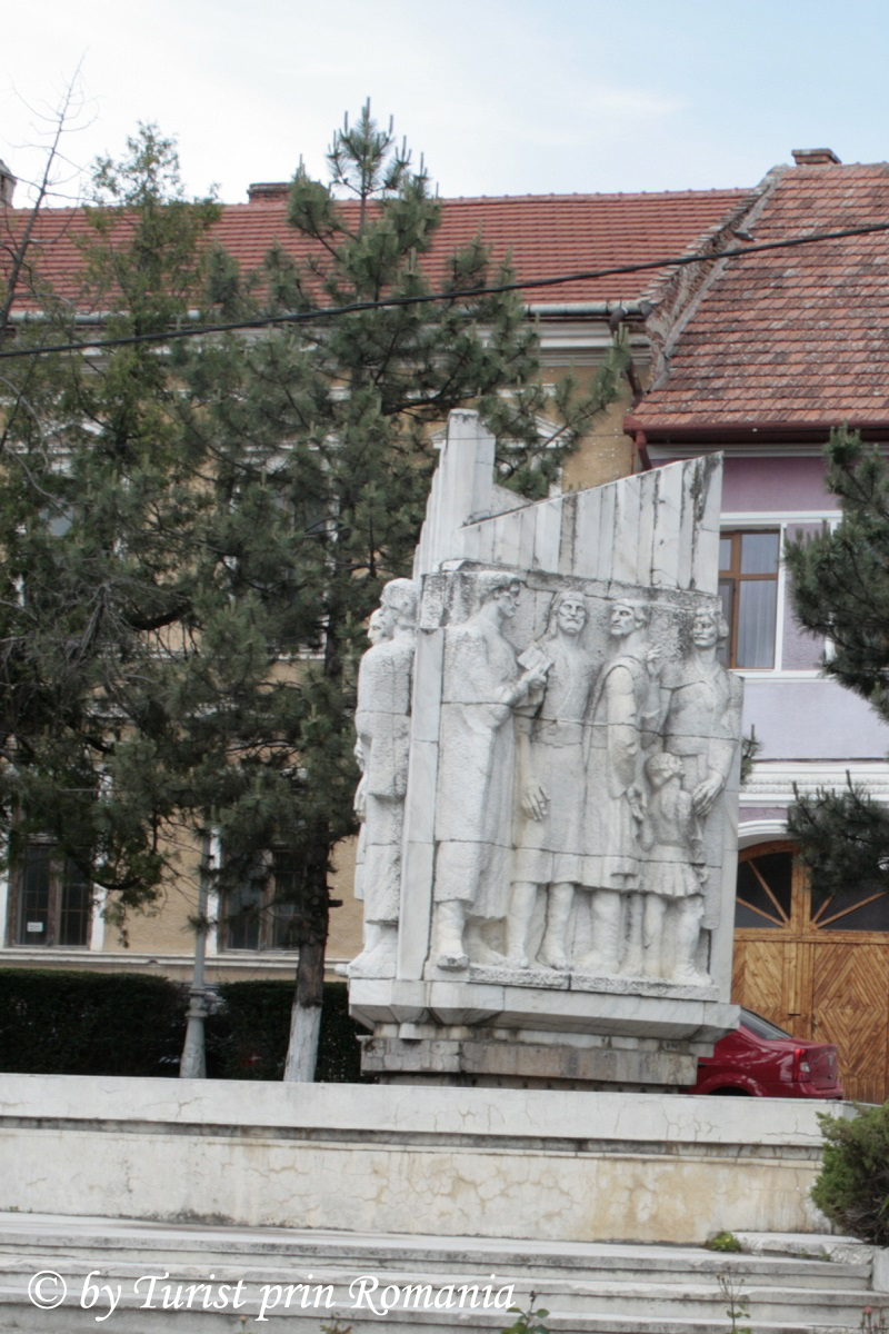 Monumentul, situat in Piața Centrală a orașului, simbolizează etapele tipăririi cărții: prima față înfățișează cărturarii ce tălmăcesc textul în limba română, a doua față îi reprezintă pe cei doi mari meșteri tipografi care au scos cartea din teasc, Șerban Coresi și Marian Diacul, iar cea de-a treia față prezintă folosirea cărții de către români. Monumentul Paliei este din marmură albă de Ruşchiţa şi a fost realizat de sculptorul Nicolae Adam.