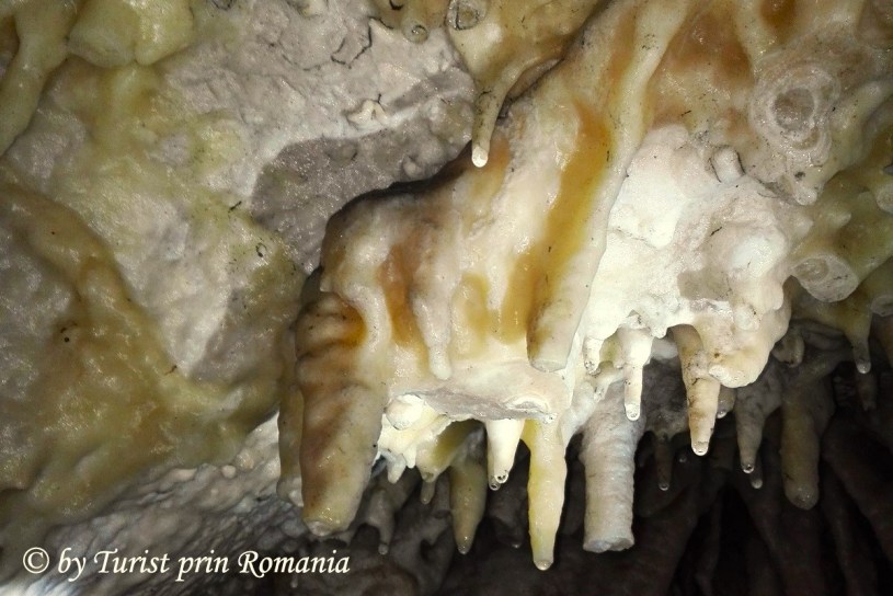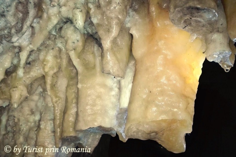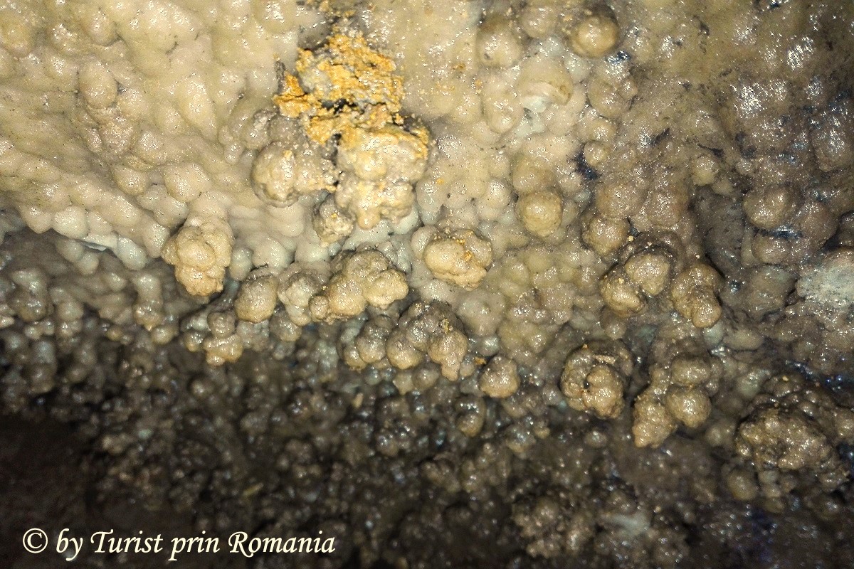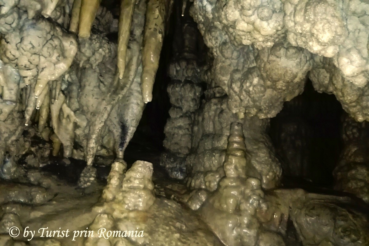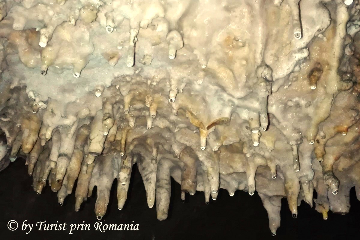 Peştera este renumită pentru formele unice ale stalactitelor şi stalagmitelor, dar şi pentru stâlpii cu guler, galeriile ei foarte strâmte şi formaţiunilor unice în România. Aici se pot admira stalactite conice, stalagmite sau stâlpi cu guler.