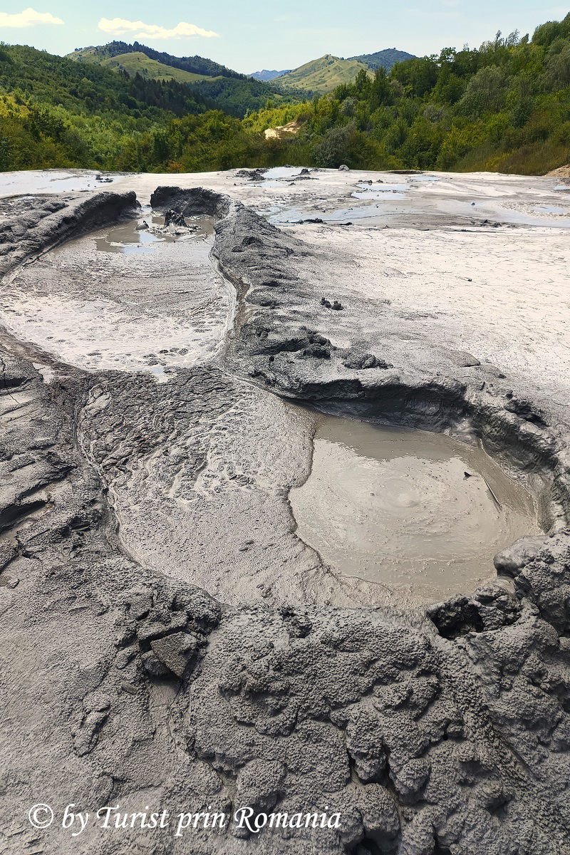 Relieful este creat prin erupţiile de pastă argilo-marnoasă şi remodelat continuu de ploi. Din cauza noroiului care este foarte lichid, conurile sunt puţin înălţate.