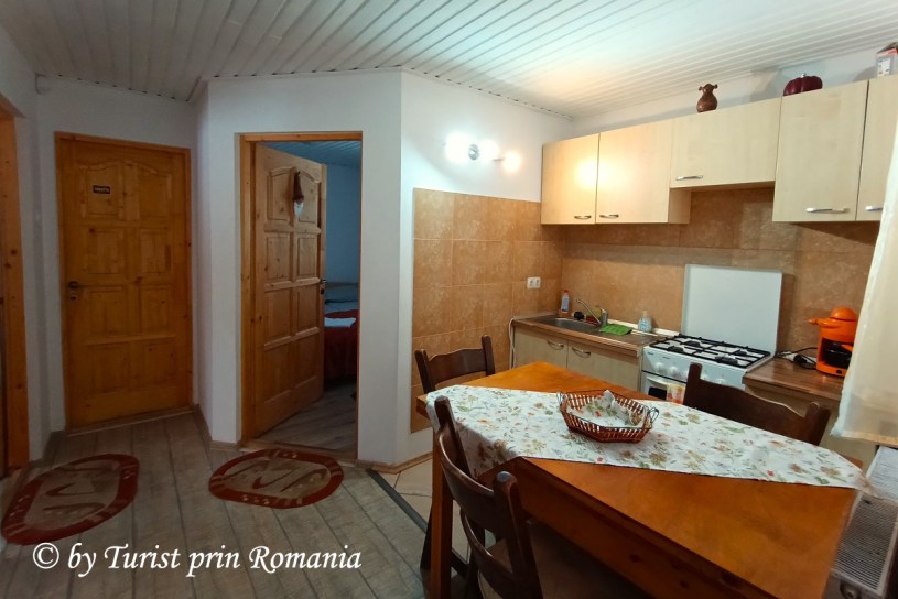 Spațiul alocat pentru bucătăria open space și pentru livingul este suficient, pentru a servi masa, o familie cu doi copii.