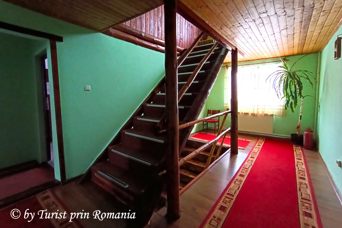 Încă de la intrarea în pensiune rămâi uimit de spațiul disponibil. Intrarea se face din parcare și te duce direct în living, living ce servește și ca salon pentru servit masa.