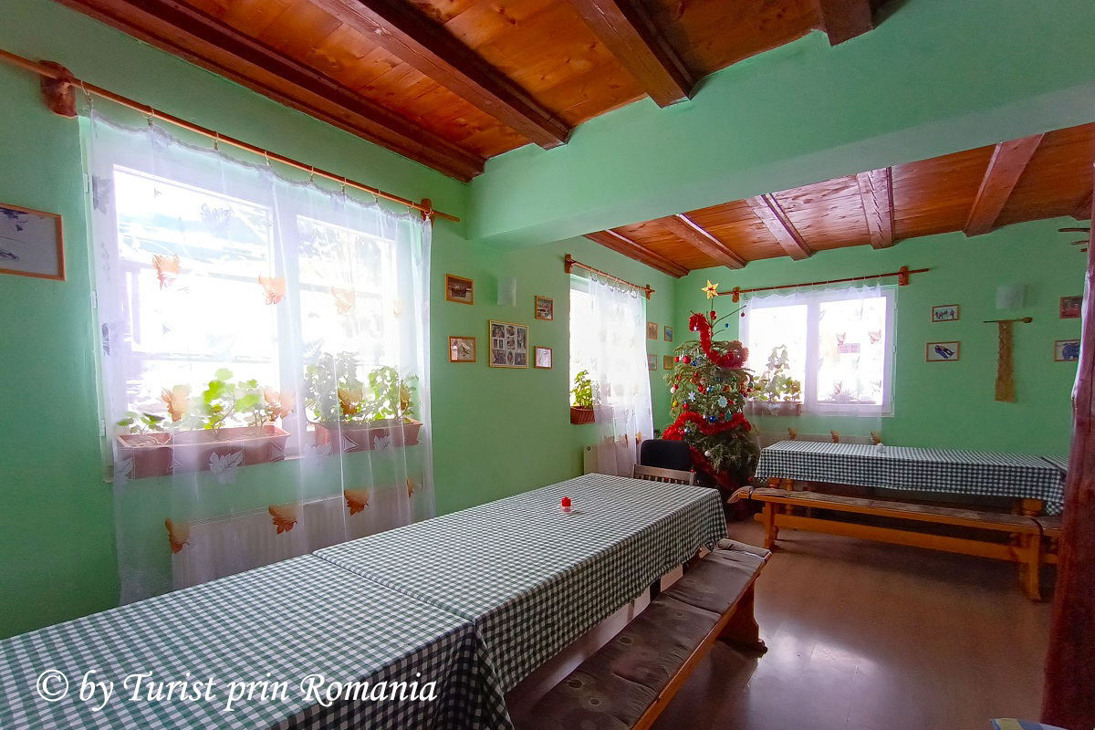 Rusticul te întâmpină încă de la intrare, iar căldura te înconjoară de pretutindeni și îți urează bun venit. Salonul pentru servit masa se organizează în funcție de mărimea grupului și de numărul de turiști, dar, de regulă, mai ales pe perioada de iarnă, salonul pentru servirea mesei este organizat în așa natură încât să maximizeze spațiul disponibil.