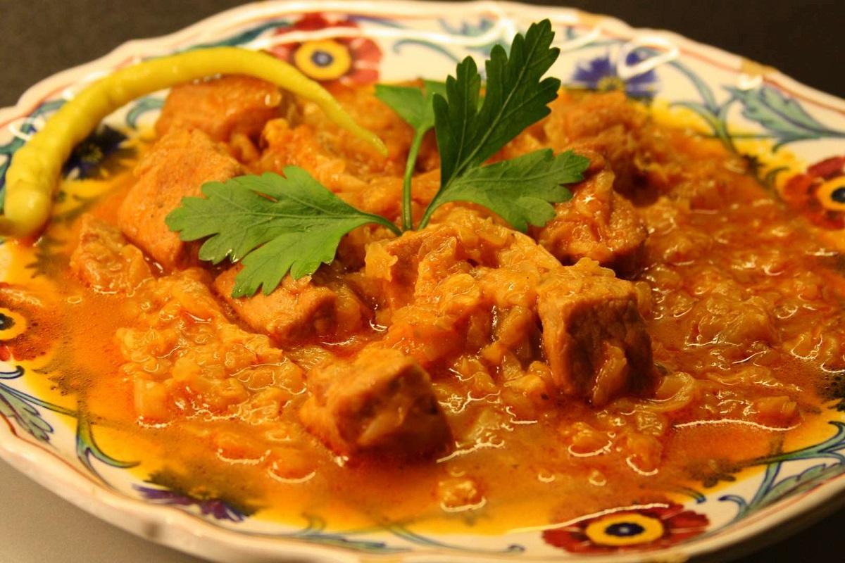 Se ia o frumoasă varză murată, care se mărunţeşte frumos, subţire. Între timp, împreună cu varza, se pune la foc mic, într-o oală, o găină grasă au o jumătate de găscă grasă cu slănină: se presară piper peste ea şi se fierbe bine: se toarnă şi vin atâta cât trebuie, ca să aibă gust mai bun; când se serveşte, se piperează din nou (…) se mărunţeşte frumos varza murată. Între timp, trebuie tăiate mărunt cu cuţitul de tocat carne şi amestecate carnea crudă de vită şi slănina, iar în amestec trebuie pus piper, ghimbir şi sare, toate pisate. Când este făcut, se înveleşte câte o bucată din amestecul de carne în câte o frunză întreagă de varză, dar mai înainte se taie partea groasă, adică cotorul frunzei. Se pun în oală împreună cu varza mărunţită şi se fierb bine. Când s-a făcut, se pune în ea puţin vin; va avea gust mai bun. Se aşază pe masă oala. Dacă se piperează, va avea gust mai bun (…) varza nouă crudă trebuie tăiată în bucăţi mari şi pusă la fiert cu slănină bună şi cu carne de berbecuţ sau cu carne de vită. Prima dată fierb carnea şi slănina, deci pune-o lângă slănină. Acreşte-o cu oţet sau cu tirighie, iar tirighia leag-o într-o cârpă şi pune-o aşa, să acrească bine. Dacă nu ai, acreşte-o cu oţet“