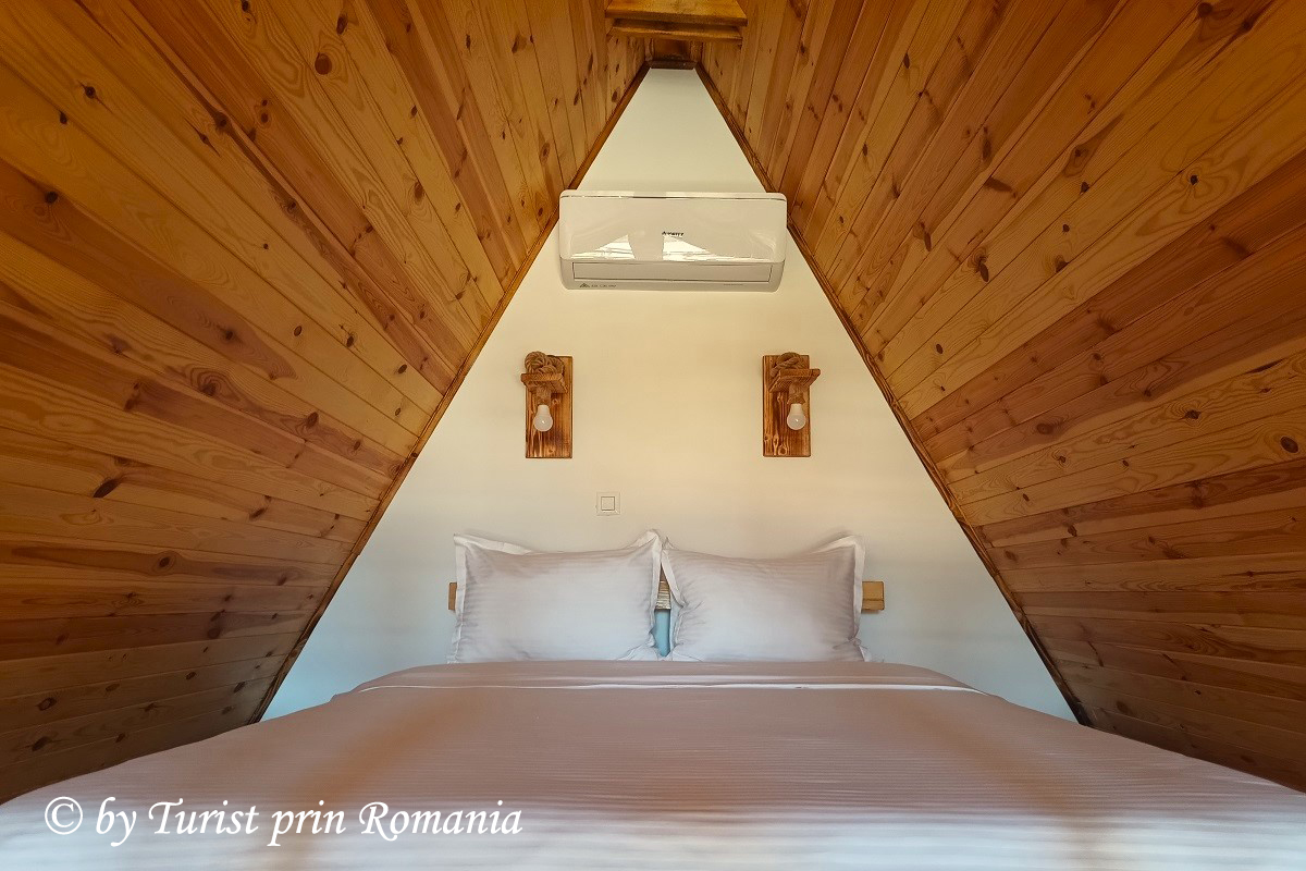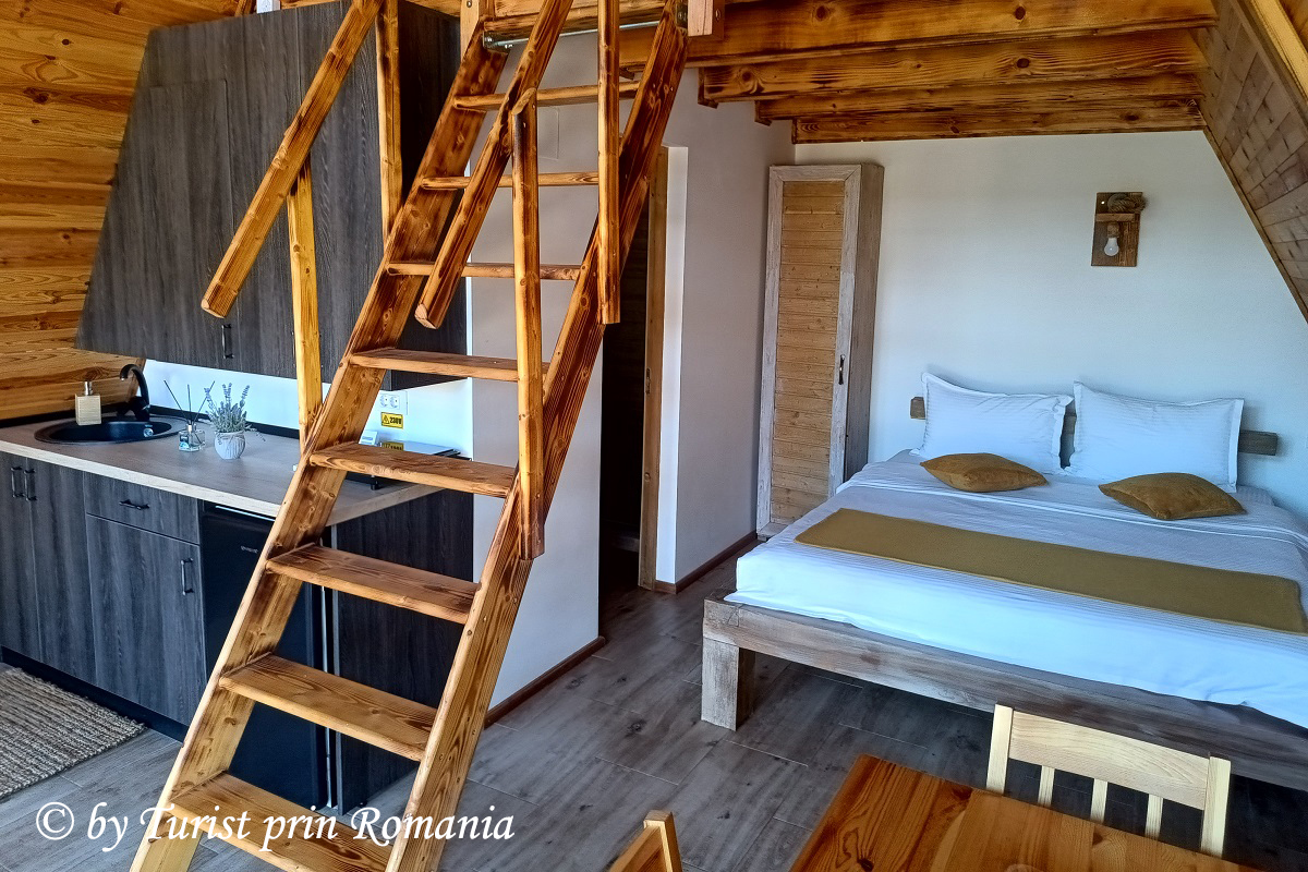 Un alt spațiu unic de cazare este cabana Mistrețul, care este un A frame cu un living spațios, bucătărie cu zonă de luat masa, baie și la etaj, un dormitor.