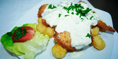 Coaste de porc cu scrijele de cartofi și sos și salată Coleslaw, by chef Dani Budai, la Green Garden Resort